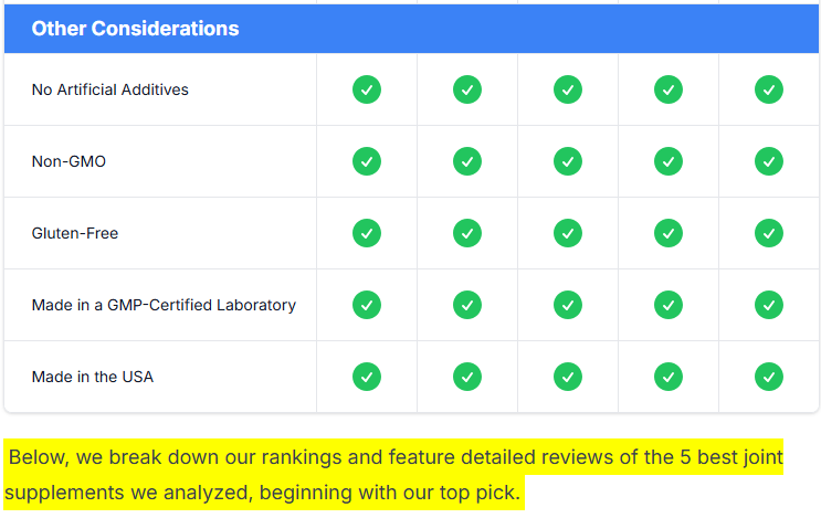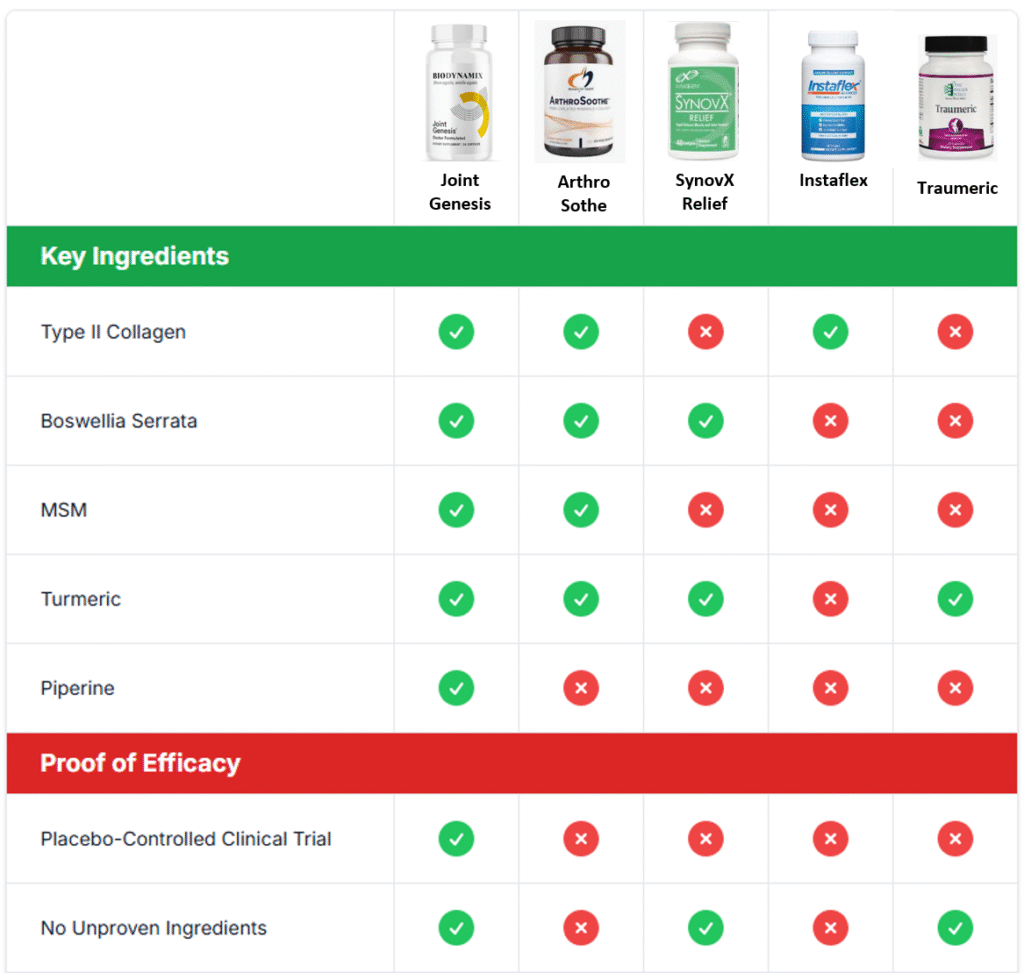 Here is a side-by-side comparison of the top joint health products available today, which provides a summary of our research and analysis: