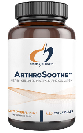 ArthroSoothe by Designs for Health contains 4 of the primary ingredients that we look for in an effective joint support supplement, including type II collagen, boswellia serrata, MSM, and turmeric standardized to 95% pure curcumin.