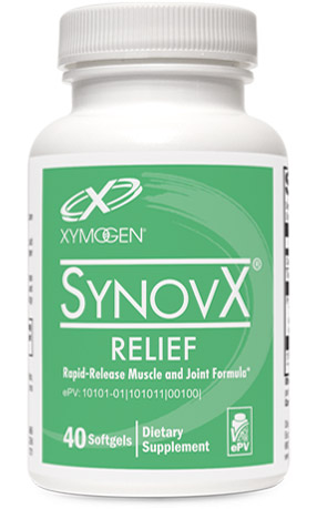 SynovX Relief by Xymogen includes 2 essential ingredients for relief from joint stiffness and discomfort, curcumin (provided by turmeric) and boswellia serrata.